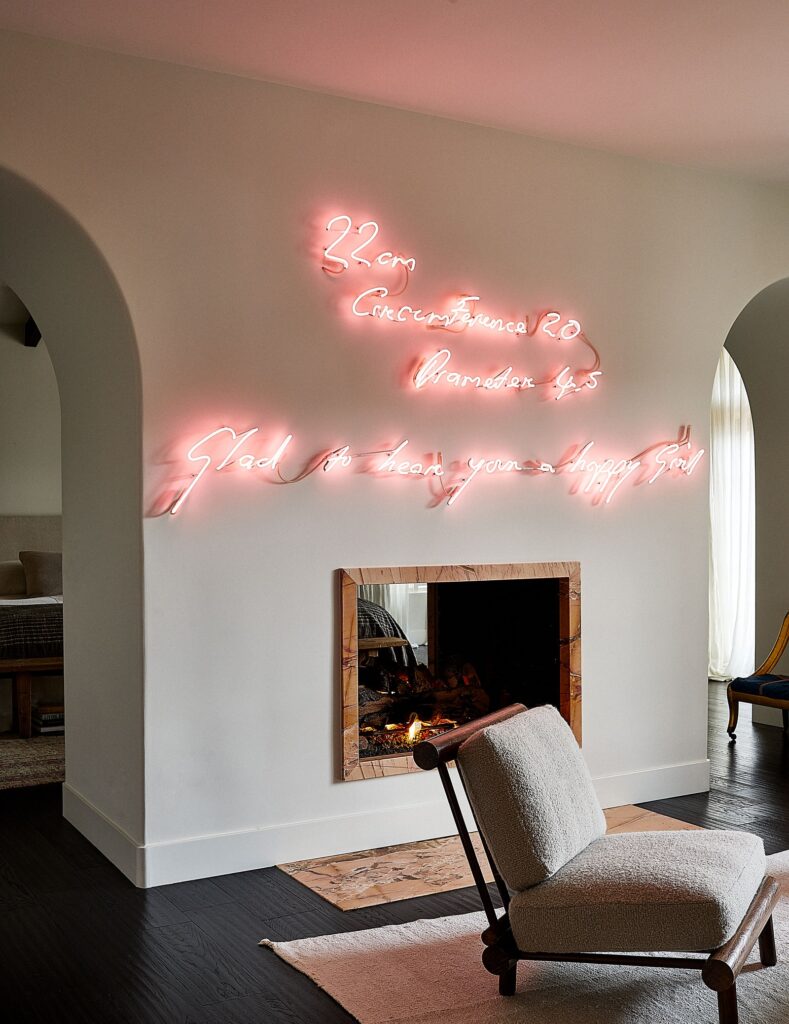 Σε αντίθεση με την υποτονική παλέτα των επίπλων και των φινιρισμάτων, η συλλογή σύγχρονης τέχνης της Jenner – η οποία περιλαμβάνει έργα των Barbara Kruger, Richard Prince, Raymond Pettibon και Sterling Ruby – διαθέτει μερικά έντονα «χτυπήματα» στη συλλογή. Ακριβώς μέσα από την κεντρική είσοδο, ένα ωοειδές γλυπτό τοίχου του James Turrell , με φώτα LED που προγραμματίζονται από υπολογιστή, υποδέχεται τους επισκέπτες σε ένα ονειρεμένο χρωματικό αποτέλεσμα.
