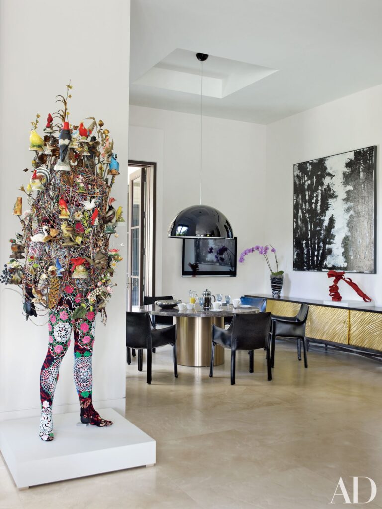 Ένα περίτεχνο γλυπτό με τίτλο «ηχητική» από τον δημοφιλή πλέον Nick Cave δεσπόζει στην αίθουσα πρωινού του συλλέκτη Becky Mayer’s Jupiter στη Φλόριντα, η κατοικία του οποίου σχεδιάστηκε από τον Furze Bard + Associates.