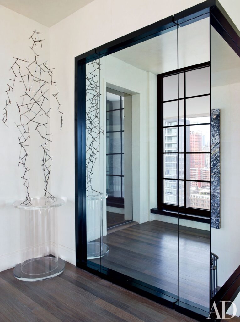 Ένα γλυπτό του Anthony Gormley στέκεται στην είσοδο των υπνοδωματίων ενός σπιτιού του Μανχάταν, του οποίο ο σχεδιαστής, Jean-Louis Deniot, για να δώσει έμφαση, το περιέβαλε από καθρέπτες.