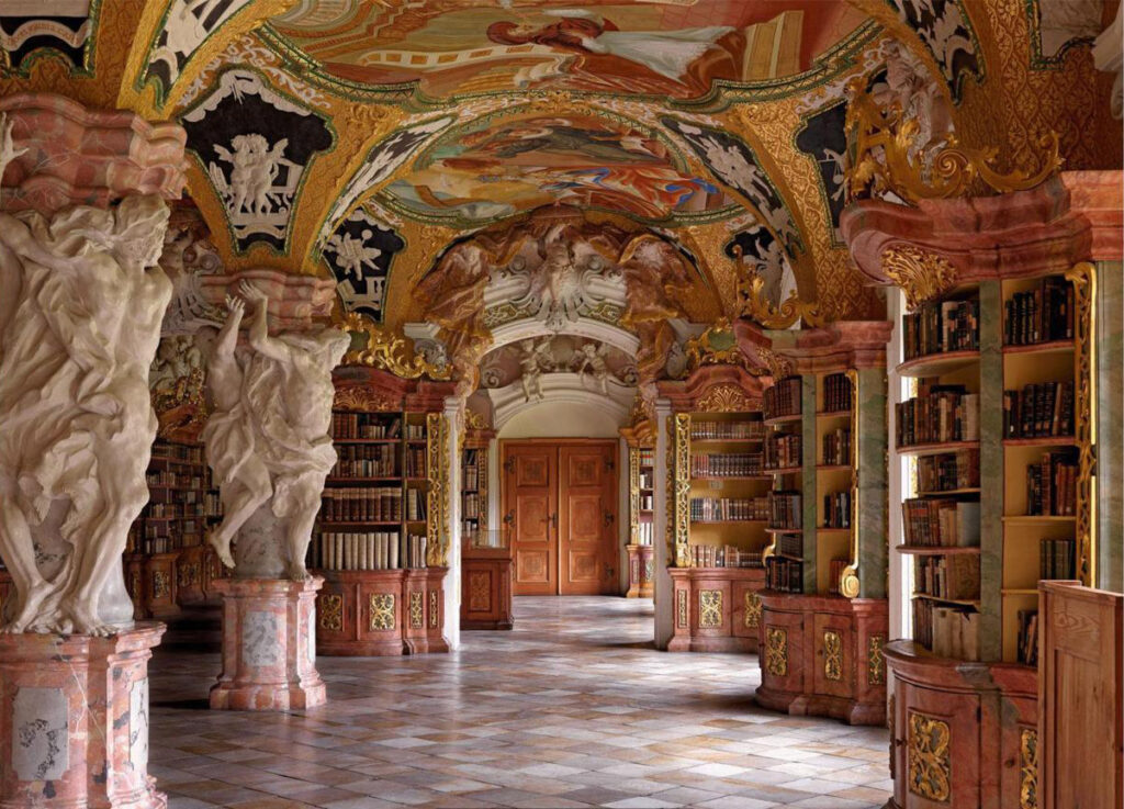Πρόκειται για μια μεσαιωνική μοναστική βιβλιοθήκη που το δέος αρχίζει να σε διακατέχει από την είσοδο. Η αίθουσα της βιβλιοθήκης, που σχεδιάστηκε από τον αρχιτέκτονα Peter Thumb σε στυλ ροκοκό , κατασκευάστηκε μεταξύ 1758 και 1767. Αποτελεί μνημείο παγκόσμιας κληρονομιάς.