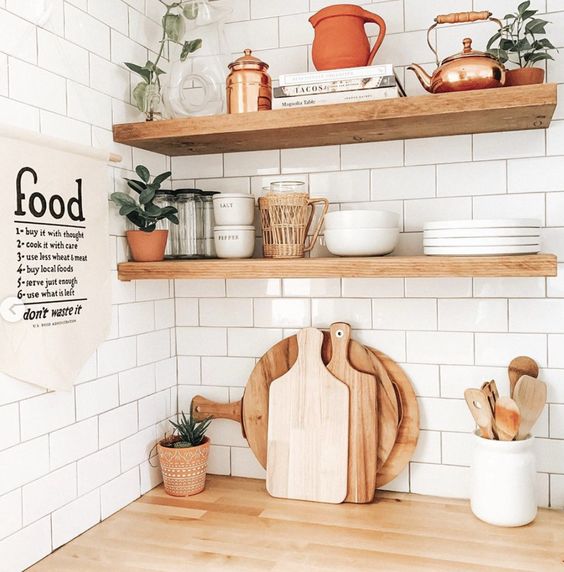 Προφανώς και δε μπορείτε να μεγαλώσετε οριζόντια την κουζίνα σας αλλά μπορείτε κάθετα! Τι εννοούμε; Εκμεταλλευτείτε το μεγαλύτερο μέρος της επιφάνειας των τοίχων σας προσθέτοντας μερικά ράφια! Ο καταλληλότερος τρόπος για να οργανώσετε τα μαγειρικά σας σκεύη, τα μπαχαρικά σας και οτιδήποτε μπορεί να σας «τρώει» χώρο από τον πάγκο της κουζίνας σας. Με αυτό τον τρόπο θα έχετε τα πάντα σε τάξη και θα μπορείτε εύκολα να τα βρίσκετε καθώς θα είναι σε κοινή θέα.