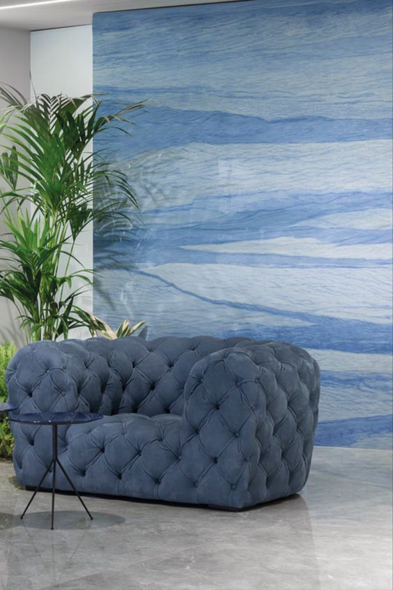 Η  λαμπερή και λεία υφή του το καθιστά διαχρονικό και ιδανικό για το μπάνιο σας, τον νεροχύτη της κουζίνας, τη σκάλα, το δάπεδο και πολλά άλλα σημεία που μπορείτε να φανταστείτε. Μπορεί στο μυαλό σας όταν ακούτε μάρμαρο να έχετε ένα υπόλευκο κομμάτι πέτρας με νερά σε αποχρώσεις γκρι-μαύρου, εμείς σας διαβεβαιώνουμε ότι στη φύση μπορεί κανείς να βρει το εξαιρετικά σπάνιο μπλε μάρμαρο!