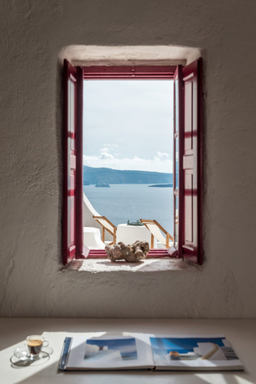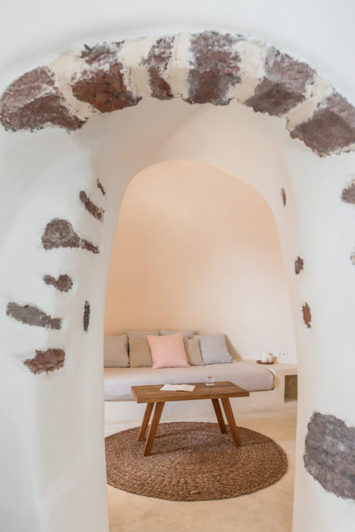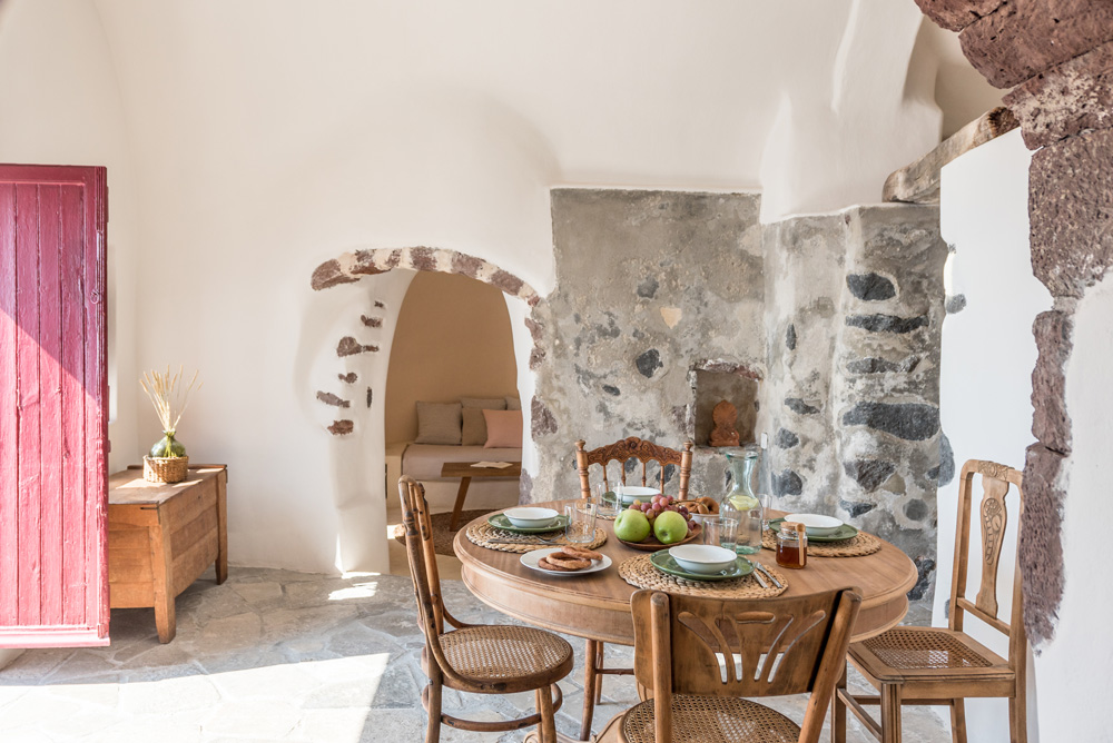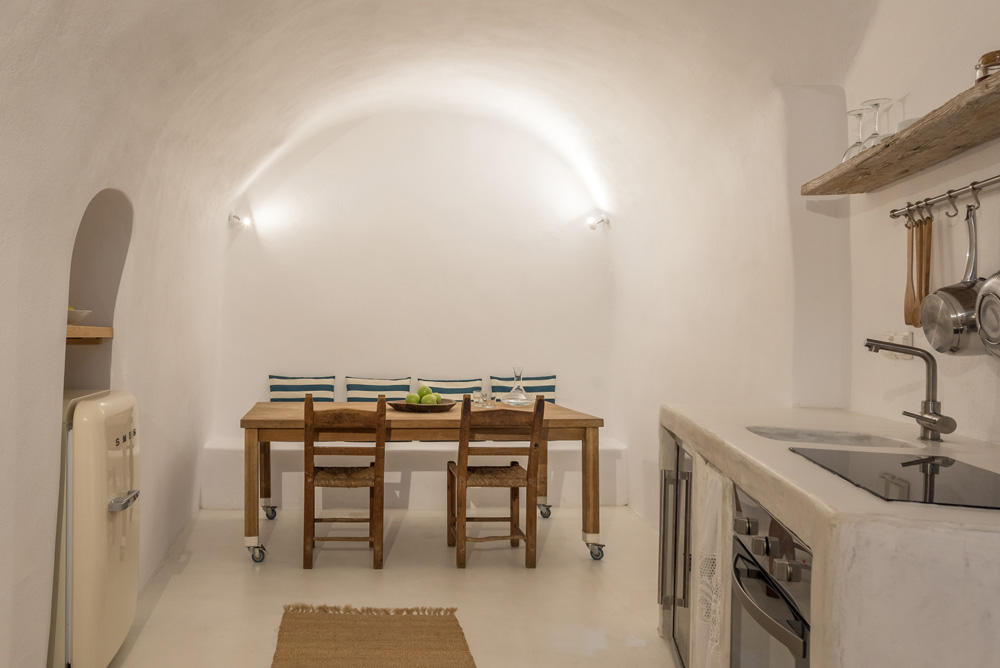 Αρχικά σχεδιασμένο ως το αγαπημένο καλοκαιρινό σπίτι, αυτές οι κατοικίες ανακαινίστηκαν από τοπικούς τεχνίτες που γνώριζαν τα μυστικά των μοναδικών σπηλαίων της Σαντορίνης. Οι ρευστές μορφές, οι ουδέτερες αποχρώσεις και οι εκλεκτικές αντίκες δημιουργούν ένα χαλαρωτικό σκηνικό για την εντυπωσιακή θέα.